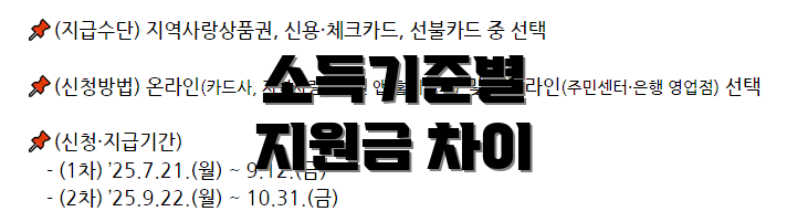 이번 강동구 천호3동 민생회복지원금 소비쿠폰은 소득 기준에 따라 지원금이 다르게 지급됩니다. 특히, 소득 수준에 따라 25만원의 차이를 주의해야 합니다.