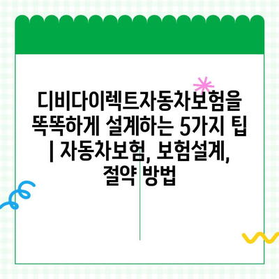 디비다이렉트자동차보험을 똑똑하게 설계하는 5가지 팁 | 자동차보험, 보험설계, 절약 방법 에 대해 자주 묻는 질문 TOP 5