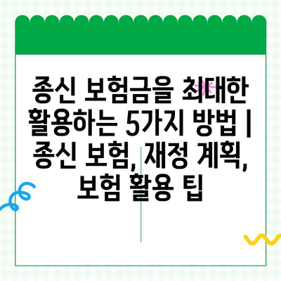 종신 보험금을 최대한 활용하는 5가지 방법 | 종신 보험, 재정 계획, 보험 활용 팁 에 대해 자주 묻는 질문 TOP 5
