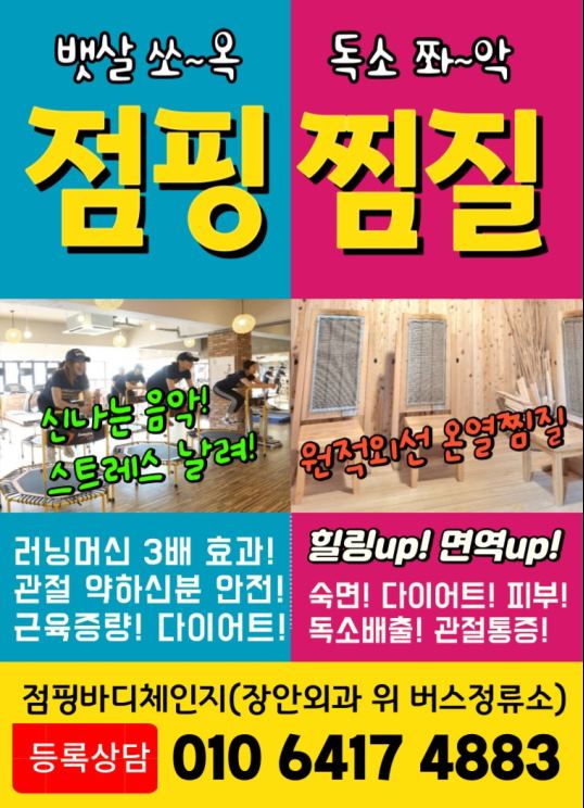 대전 대덕구에 위치한 점핑바디체인지는 점핑운동을 통해 누구나 쉽고 재미있게 운동할 수 있는 곳이에요. 가족들끼리 함께 다이어트나 근육증량, 키성장부터 집중력 강화까지 다양한 목적으로 즐길 수 있습니다. 안전하고 개인 맞춤형 강도로 운동할 수 있어 관절이나 허리가 약하신 분들도 걱정없어요. 운동 전후에는 허브티와 단백질 쉐이크를 제공하여 건강을 돕고, 반신욕으로 피로를 효과적으로 회복할 수 있답니다. 1:1 코칭을 원하시는 분들에게는 특별한 케어도 제공하고 있어, 건강과 몸매를 함께 챙기기에 좋은 곳이에요.