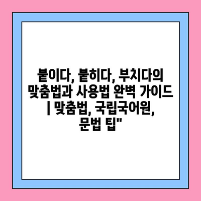 붙이다, 붙히다, 부치다의 맞춤법과 사용법 완벽 안내 | 맞춤법, 국립국어원, 문법 팁