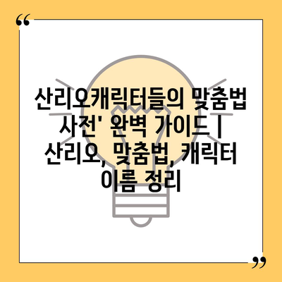 산리오캐릭터들의 맞춤법 사전’ 완벽 안내 | 산리오, 맞춤법, 캐릭터 이름 정리 에 대해 자주 묻는 질문 TOP 5