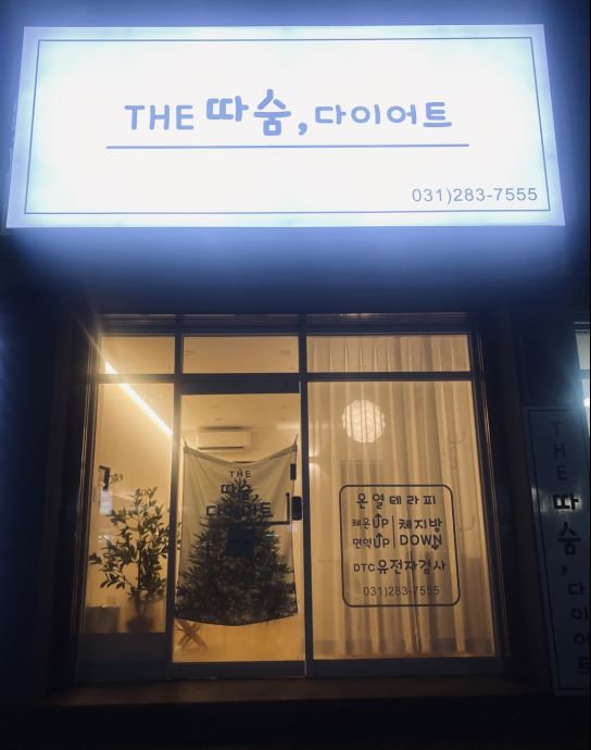 더따숨다이어트는 경기 용인시 기흥구 강남동로에 위치한 강남마을코오롱하늘채아파트 상가동 1층 102호에 위치하고 있습니다. “체온 up! 면역 up! 체지방 down!”이라는 다이어트를 제안하며, 손발이 차가운 분, 만성피로에 시달리는 분, 운동을 귀찮아하고 싶으신 분들을 대상으로 합니다. 이외에도 면역력, 혈액순환, 비만, 내장지방에 고민이 있는 분들을 위한 공간으로 100% 예약제로 프라이빗한 서비스를 제공합니다. 몸과 마음이 회복되는 힐링 공간, 더따숨다이어트에서 함께하세요.