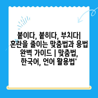 붙이다, 붙히다, 부치다| 혼란을 줄이는 맞춤법과 용법 완벽 가이드 | 맞춤법, 한국어, 언어 활용법’