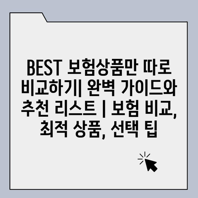 BEST 보험상품만 따로 비교하기| 완벽 가이드와 추천 리스트 | 보험 비교, 최적 상품, 선택 팁